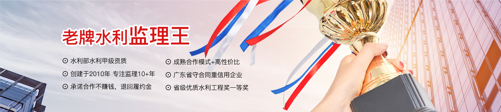 廣東中水工程監(jiān)理有限公司成立于2010年7月,是一家工程監(jiān)理綜合性服務(wù)企業(yè)。公司擁有水利部水利甲級(jí)、房屋建筑/市政公用甲級(jí)等資質(zhì),被列入廣東省政府采購代理機(jī)構(gòu)指定企業(yè),多次獲得“廣東省守合同重信用企業(yè)”等榮譽(yù)。